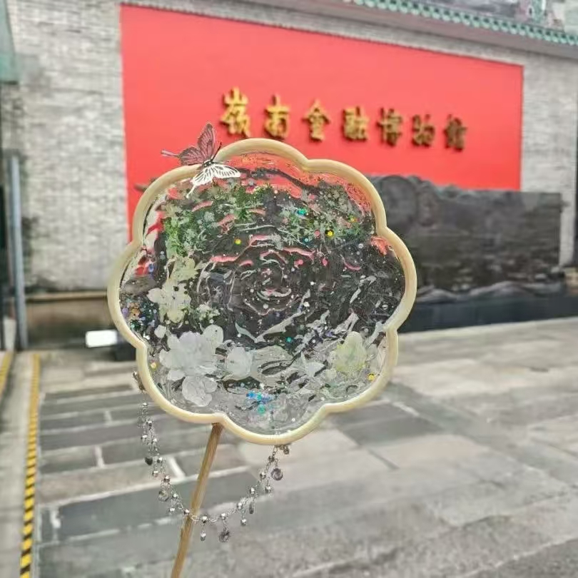 夏日凉风盈水扇,岭南金融添新彩:“流动的夏日”水扇DIY传递着清代外销扇当中的金融智慧,观众以家庭为单位认真制作,运用现代材料复现传统工艺,将特制扇框置于塑料基片,以胶水绘制层层水波纹,既展现岭南水乡文化特质,又与清代外销扇“中西合璧”的创作理念相呼应。